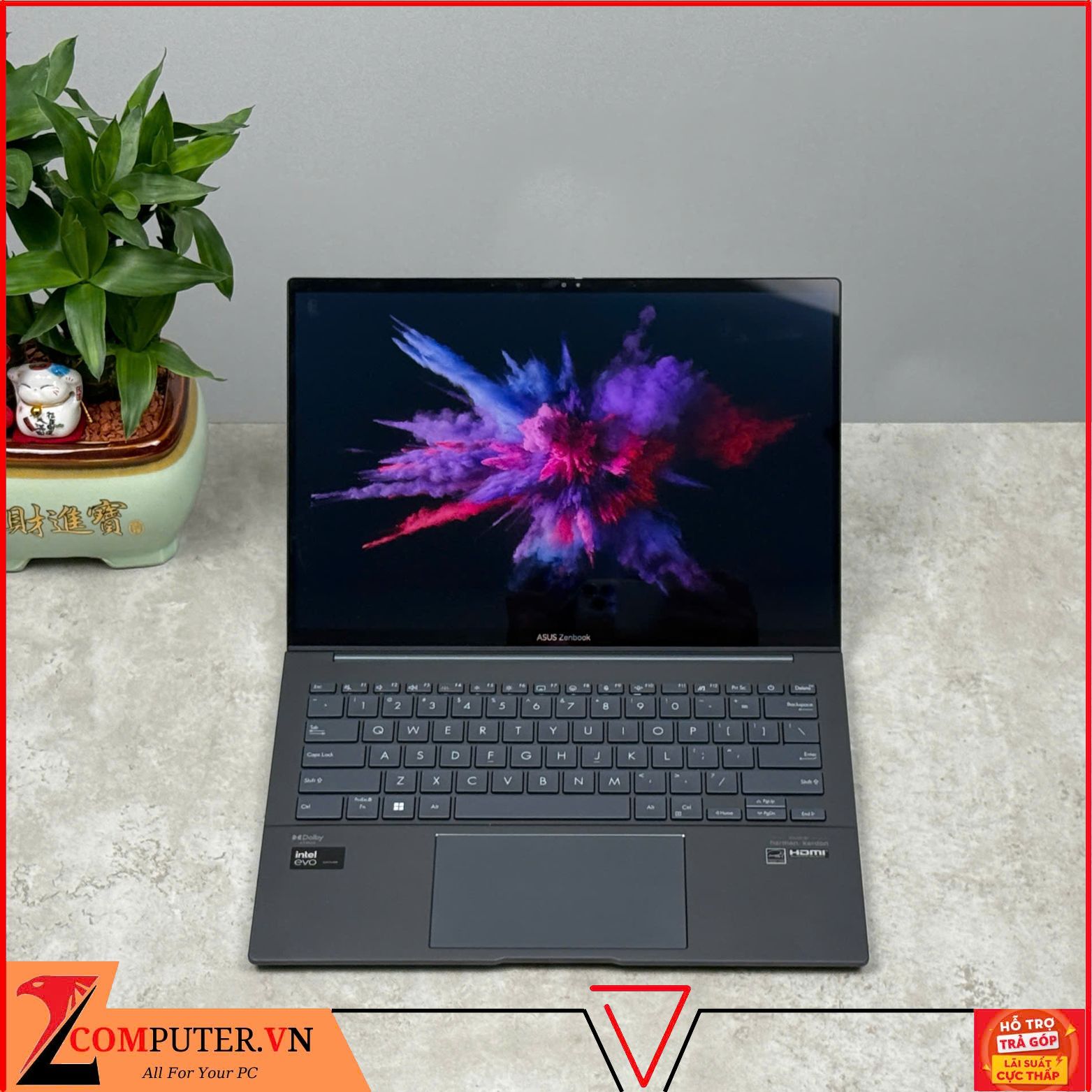 Asus Zenbook Q425 tinh tế trong Thiết Kế: Một cái nhìn đầu tiên và bạn sẽ ngay lập tức bị thu hút bởi sự tinh tế của Asus Zenbook 14 Q425 OLED, với vỏ kim loại nguyên khối, nó không chỉ đẹp mắt mà còn cực kỳ bền bỉ, đạt chuẩn độ bền quân đội Mỹ MIL-STD 810H. Với trọng lượng siêu nhẹ chỉ 1.28kg, bạn có thể dễ dàng mang theo. Asus Zenbook Q425 được trang bị hệ thống tản nhiệt hiệu quả với 2 quạt IceBlade thế hệ mới, giúp máy luôn hoạt động mát mẻ, ổn định ngay cả khi bạn sử dụng các ứng dụng nặng. Cùng với đường cắt kim cương sắc sảo và logo Asus bóng bẩy tạo nên điểm nhấn sang trọng, làm nổi bật chiếc laptop.
