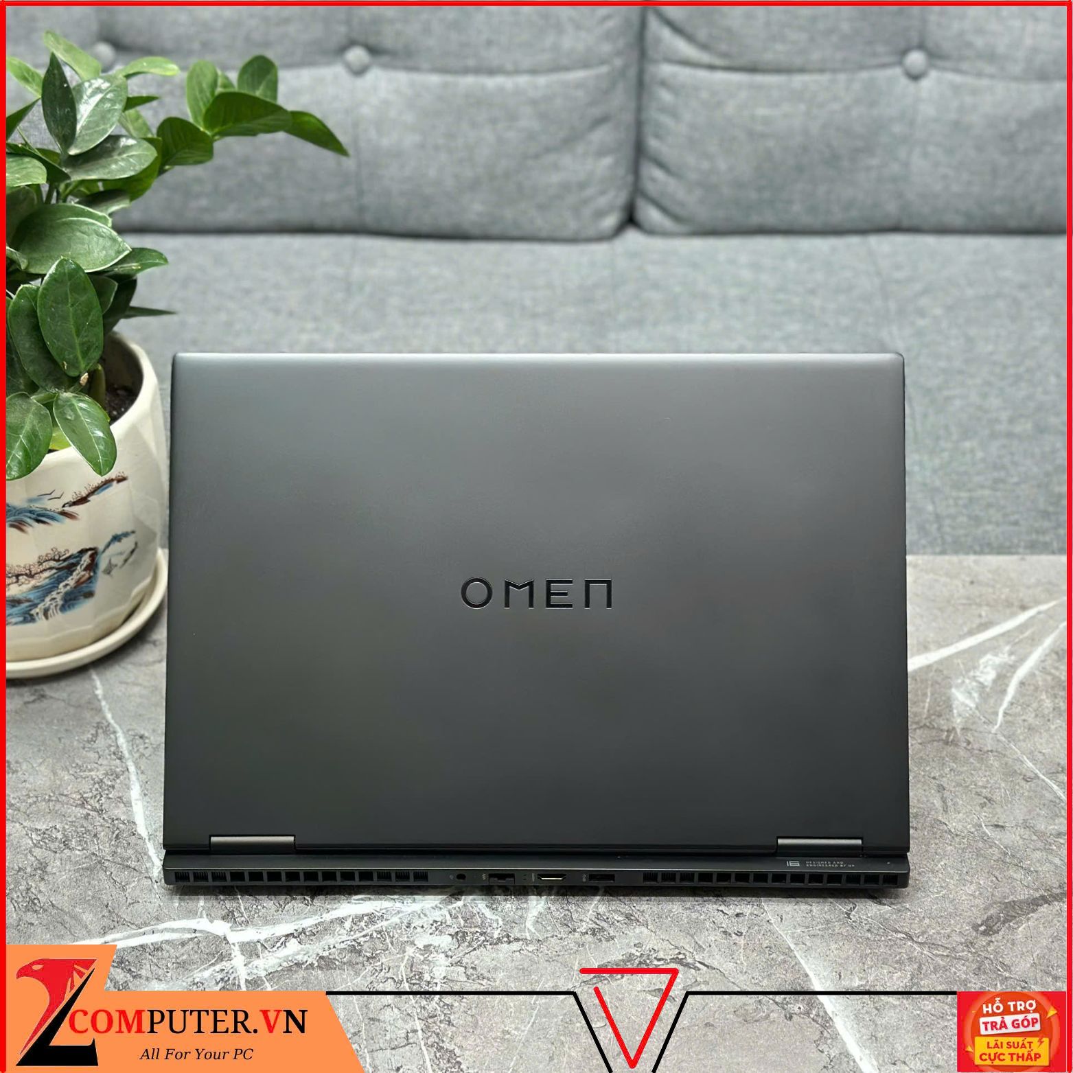 Laptop HP OMEN 16 là sản phẩm laptop gaming cao cấp nhưng lại có hơi hướng thiết kế tối giản hơn so với các sản phẩm khác trong cùng phân khúc. Mặt A của laptop chỉ gồm logo Omen màu đen bóng và số 16 được cách điệu ở phần chiếu nghỉ mặt C. Cách thiết kế sắp xếp trên chiếc laptop HP này tạo nên cảm giác chiếc laptop này nhỏ gọn hơn so với một chiếc laptop gaming 16 inch thông thường. Khối lượng của máy khoảng 2.3 kg – có phần nặng hơn trung bình với các laptop cùng loại một chút tuy vậy với những anh em game thủ “chân chính” thì có lẽ đây không phải là vấn đề quá lớn.